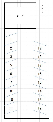 | 中心部まで程近い駐車場です。ココに自転車を置いて職場と駐車場を往復する方も多くいます。前の道路は一方通行です。ご注意ください。 |